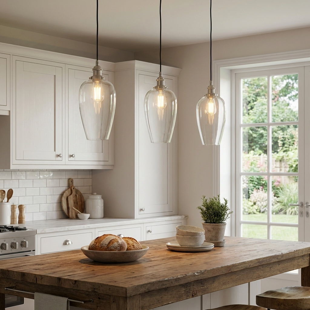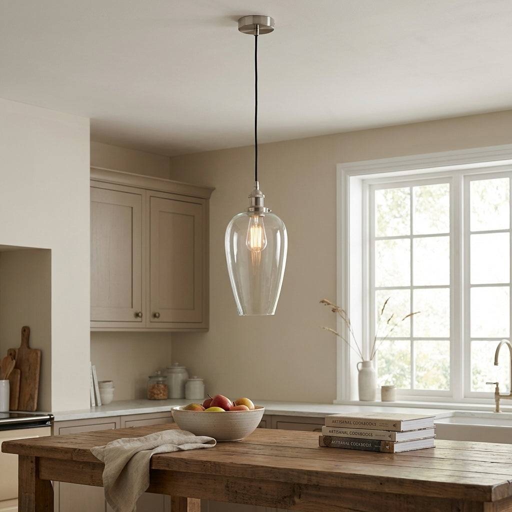 Its slender proportions make it one of the most versatile pendants in our collection. It won't overwhelm a smaller space, but grouped in a row above a kitchen island or dining table it creates a line of light that feels genuinely considered.