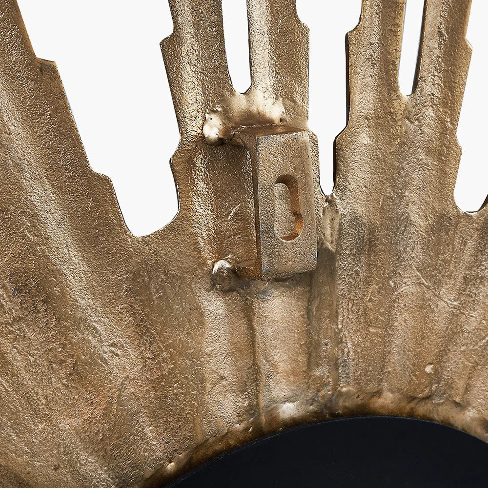 The intricate gold starburst design radiates elegance, while the black clock face ensures timeless readability. Pair it with the matching mirror for a coordinated, high-end look.
