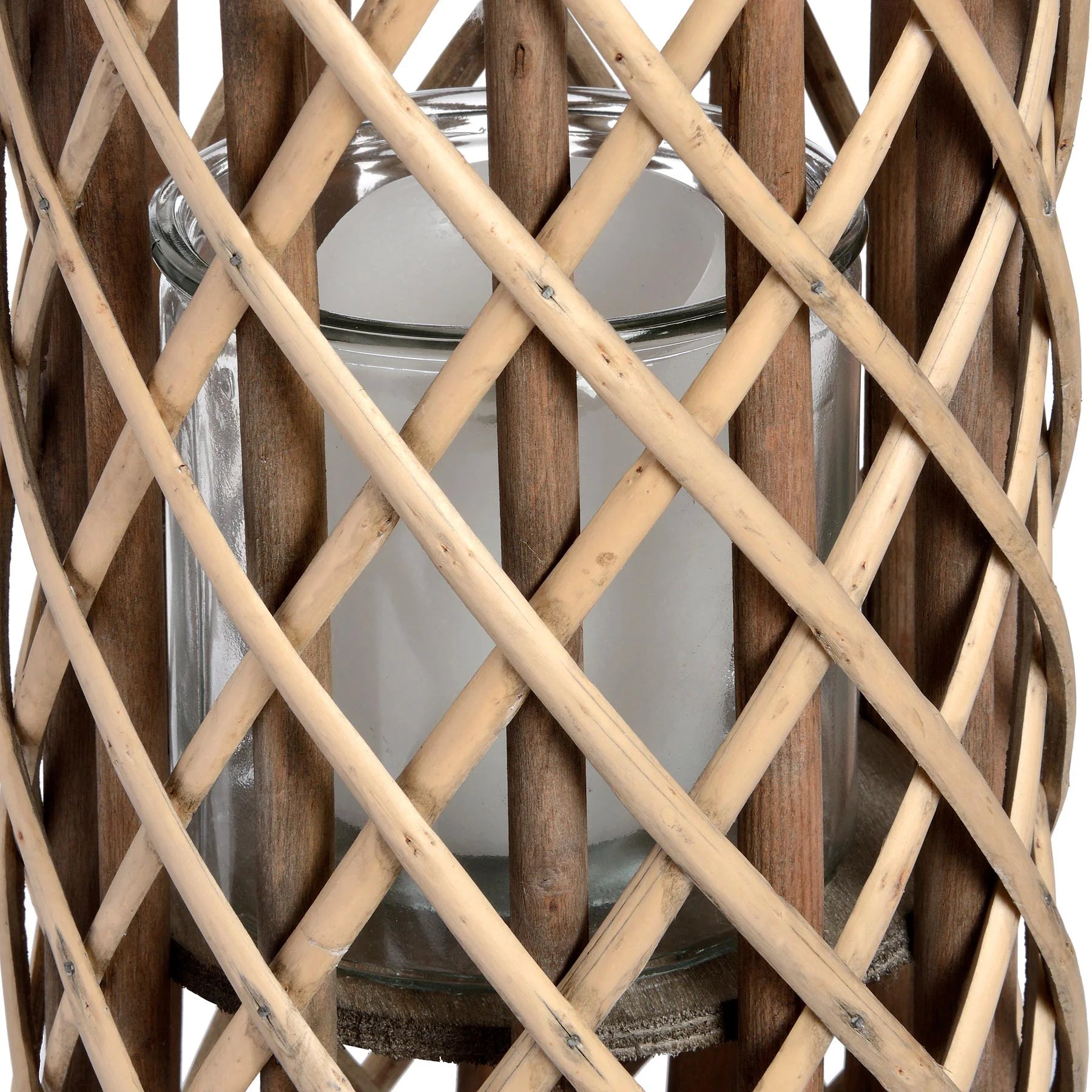 Introducing the Hill Interiors Small Wicker Lantern with Glass Hurricane—a stylish addition to your home décor. Elevate your space with the natural charm of our wicker lantern collection.