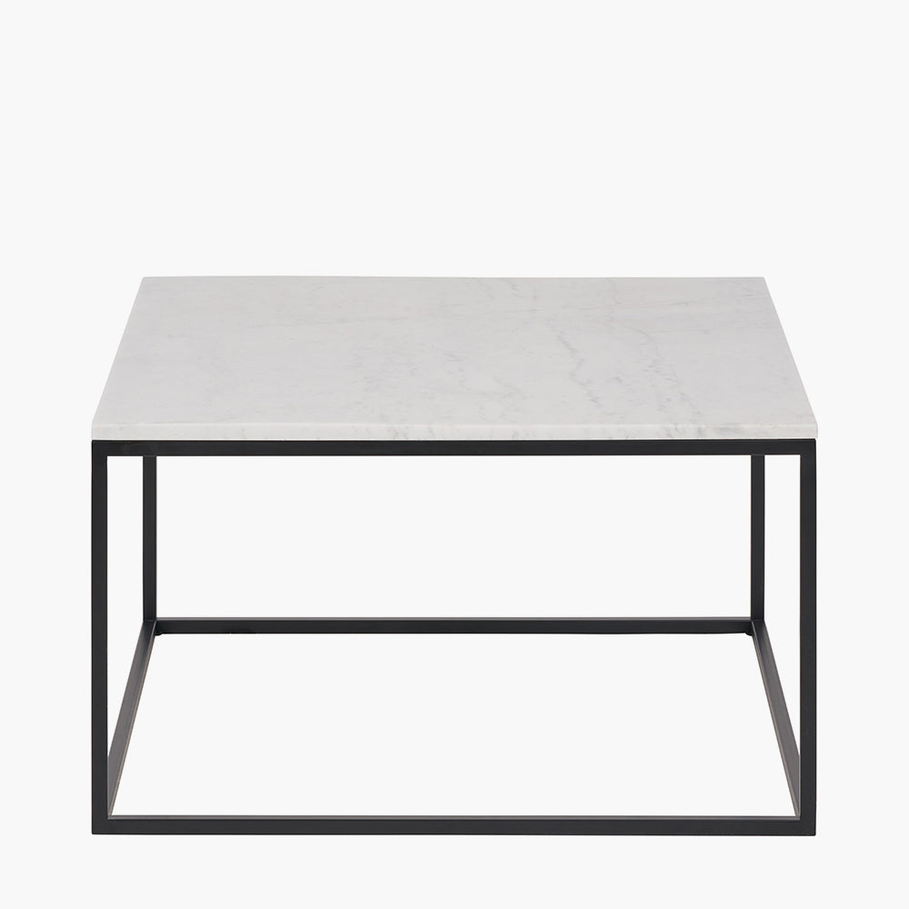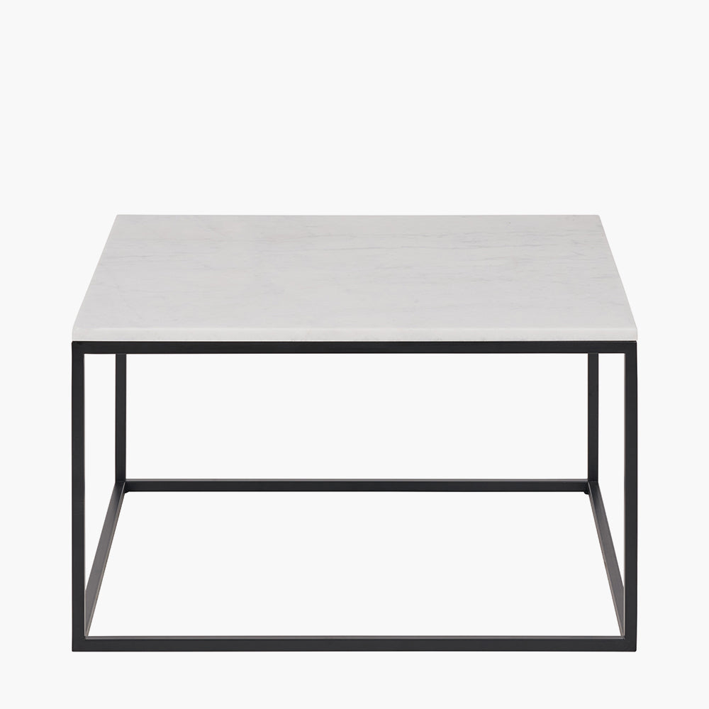 Kalani White Marble and Black Metal Square Coffee Table