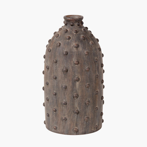 Elevate your living space with our exquisite stoneware vase. Handcrafted in the Philippines, its textured dot design and sophisticated grey finish exude contemporary elegance. This grey vase has a waterproof lining if you decide to add fresh flowers.