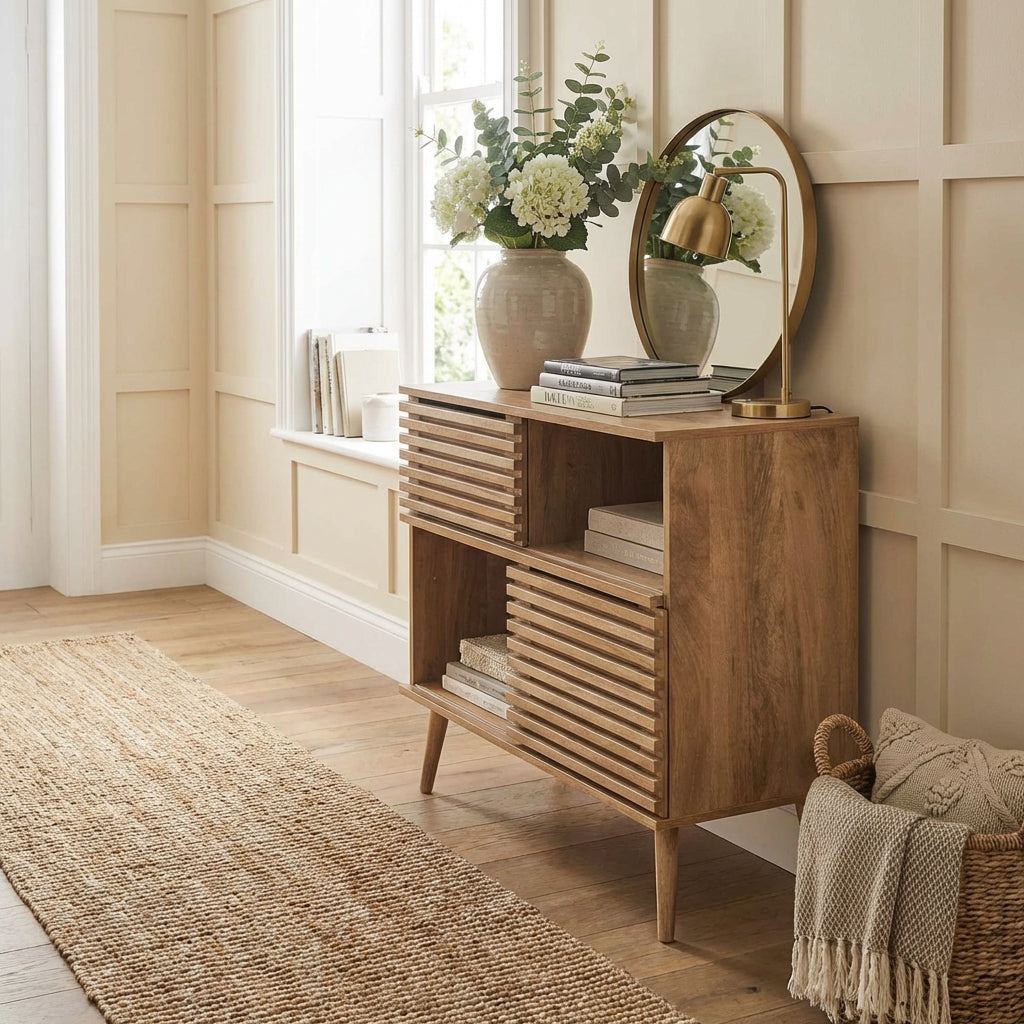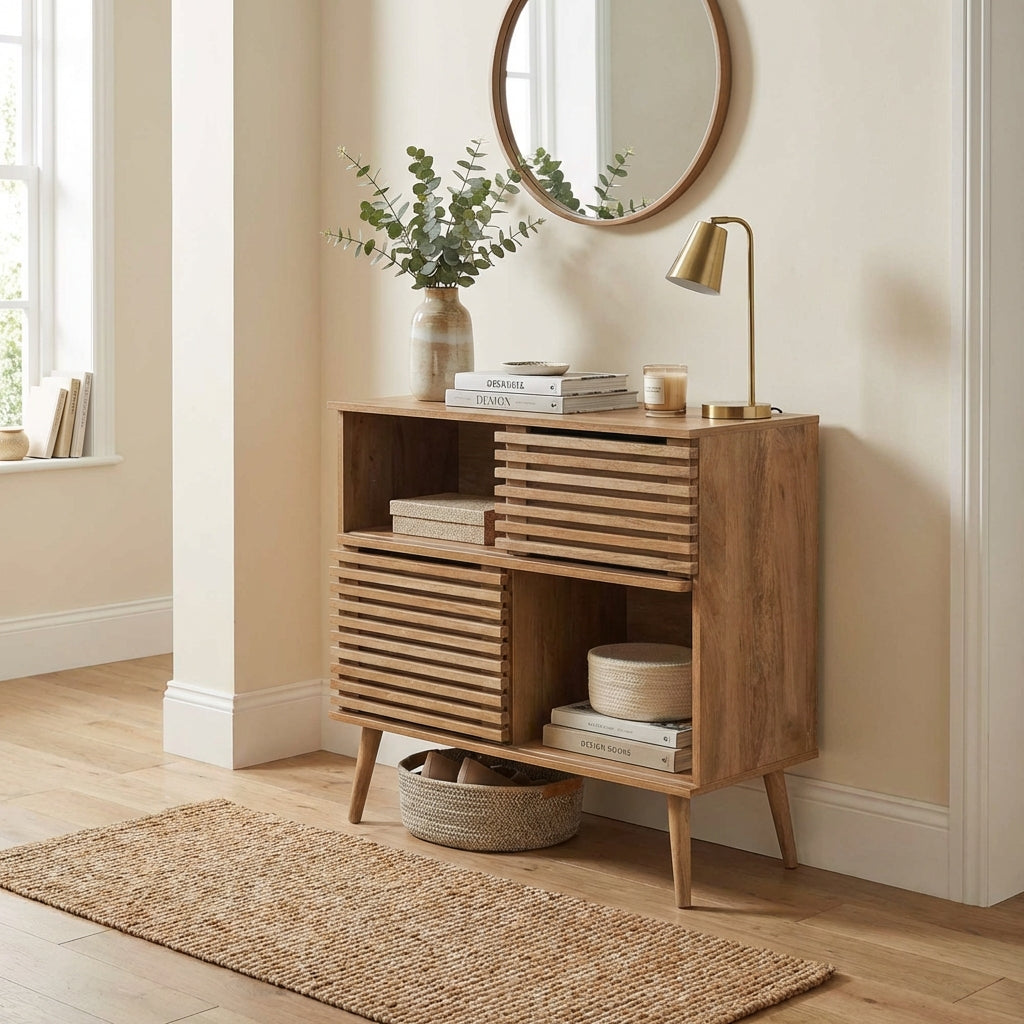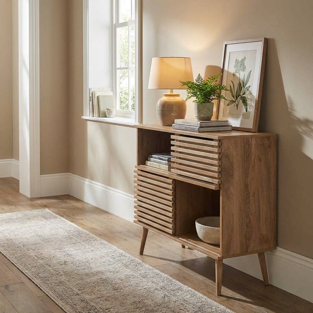 Natural Wood Slatted Sideboard Storage Unit