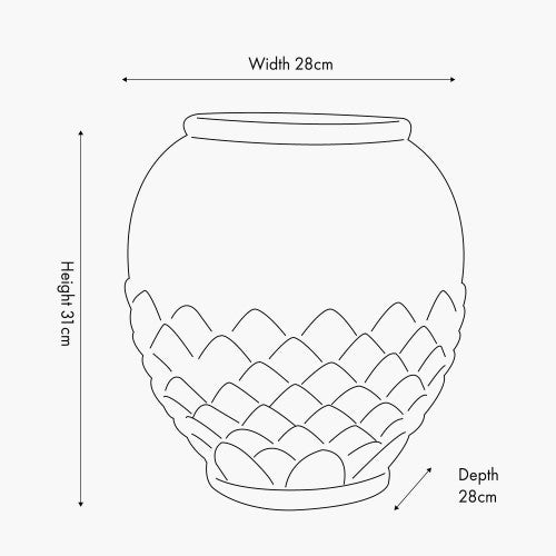 This delicately curved, well proportioned, terracotta vase, finished in a soft white hue, is adorned with 3D textured leaves and a light distressing on the edges. Hand crafted and truly unique, this white stoneware vase has a waterproof lining ensuring you can accessorise it with fresh or faux flowers.